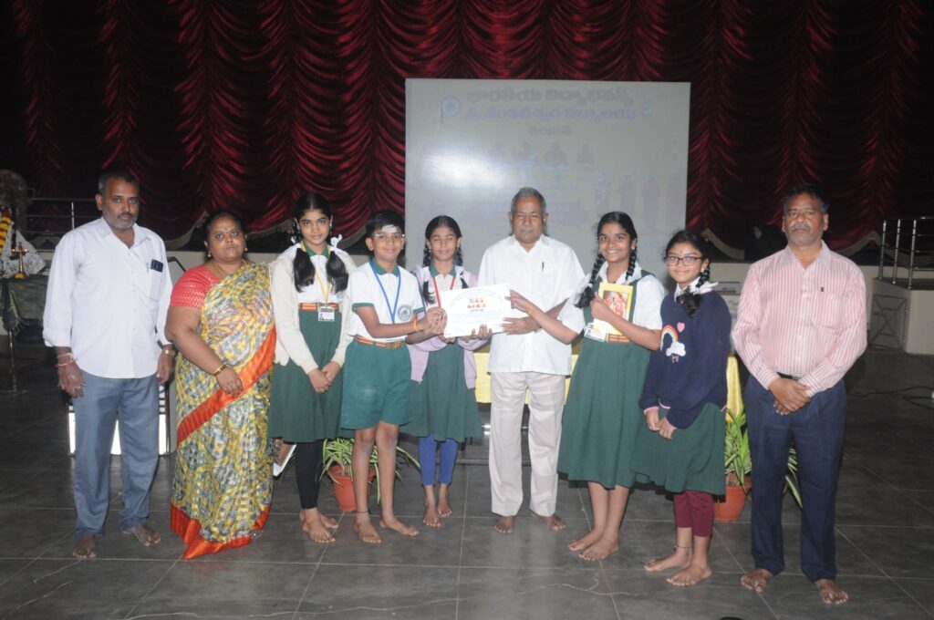 The 32nd Aradhana Utsavam of Sri Sri Sri Chandrasekharendra Saraswati Mahaswami was observed with devotion at our Vidyalaya. As part of the 45,000 students across Andhra Pradesh and Telangana, 135 students from BVB recited 108 verses from the Bharata and Bhagavata