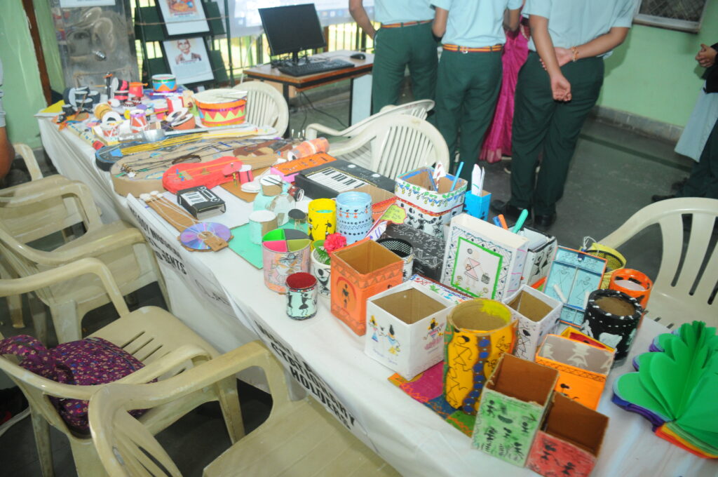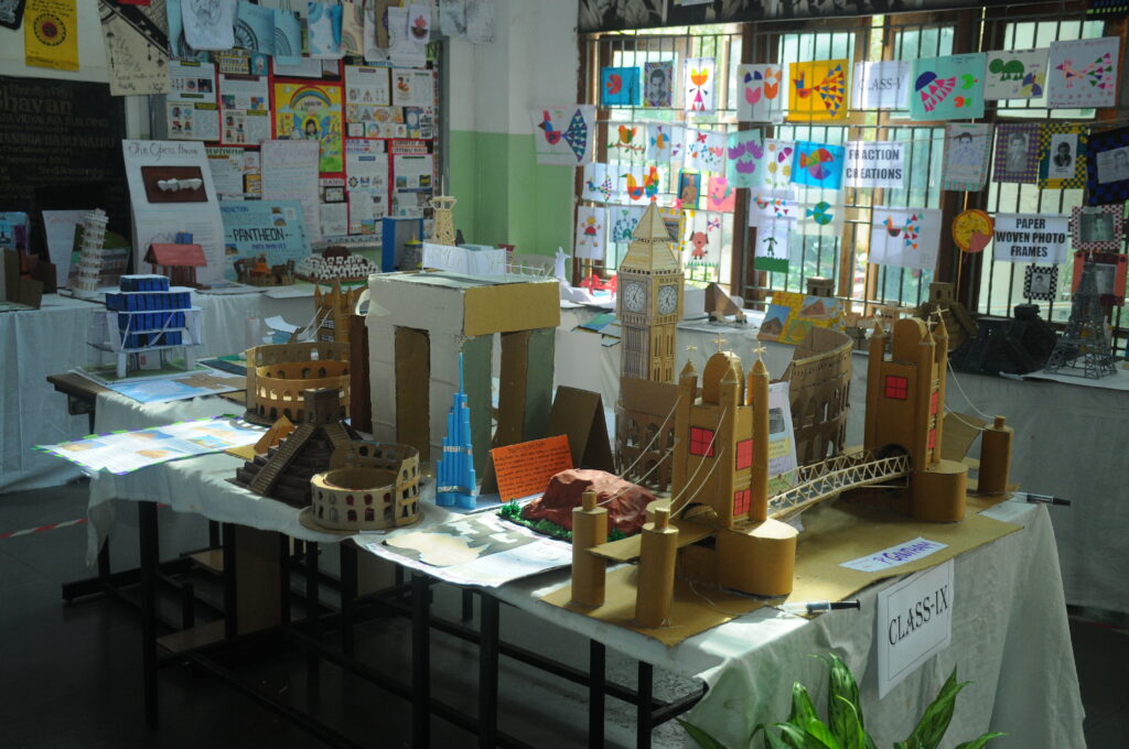 Wonderful exhibits were displayed in the school lobby, showcasing pen stands, wind chimes, monuments, jewellery made using 3D shapes, real-life applications of mathematics, music in mathematics, Ikigai, real-time weather reports, and SIP projections. The children bursted with creativity and math magic, making the event vibrant and engaging.