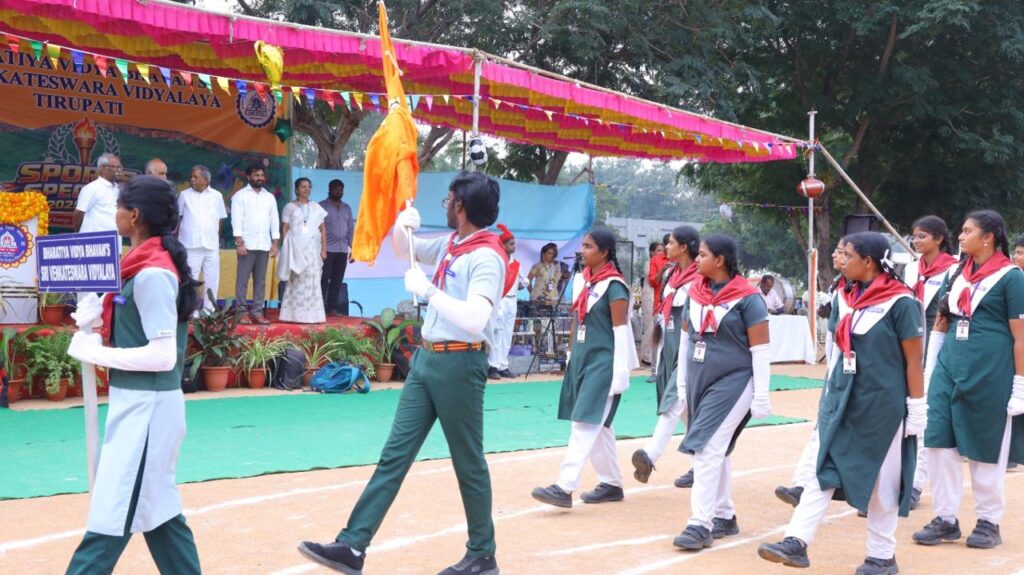 The school conducted Sports Day on 20 December, 2025. It was a day filled with energy, teamwork, and endless enthusiasm! Our students showcased true sportsmanship, determination, and joy as they participated in various events and cheered each other on. . The event was graced by our esteemed Chief Guest Shri A. Ravi Naidu, Chairman, Sports Authority of Andhra Pradesh (SAAP), and presided over by Dr. N. Satyanarayana Raju, Hon. Director & Treasurer, Bharatiya Vidya Bhavan, Tirupati Kendra. The programme was conducted under the guidance of Principal D. Padmaja, whose leadership and support played a key role in the smooth conduct of the event. With the collective efforts of the management, staff and students, Sports Spectra 2025-26 was a wonderful celebration of fitness, unity, and school spirit. From proud moments, happy memories, and lessons beyond the classroom, here’s a glimpse of a day well spent!